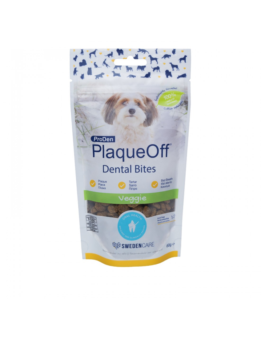 ProDen PlaqueOff® Snack dental tiene como principal ingrediente un alga especialmente seleccionada, que ha demostrado en ensayos clínicos, su efectividad para reducir la acumulación de placa, la formación de sarro y el mal aliento y viene en un formato muy fácil de administrar. ProDen Plaqueoff® es único ya que actúa desde el interior. Sin azucares añadidos, ni aditivos, conservantes ni colorantes artificiales. Es un producto 100% natural.